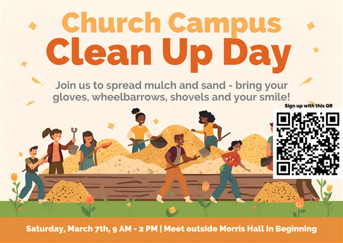 This is a great way to serve together as we prepare our grounds to warmly welcome preschool families, visitors, and our church family during the upcoming Easter season.