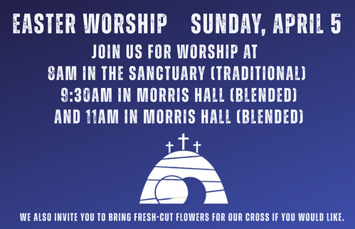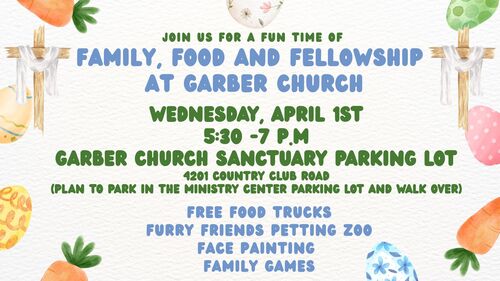 Join us this Holy Week and Easter as we gather in worship, reflection, and celebration of the hope we have in Christ. We invite you to come be part of the meaningful services and fellowship and worship opportunities this season at Garber Church.
