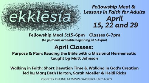 Fellowship Meal & Lessons in Faith for Adults Wednesdays (April 15, 22 and 29) in Morris Hall