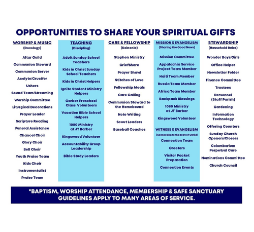 Submit a request below to find out what your Spiritual gifts are and where you are best fit to serve!